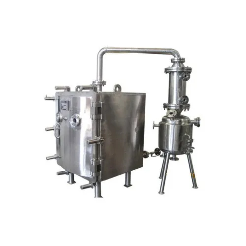 Vacuum tray dryers contain vertically arranged shelves, each with its own heating plates. The wet product is placed on trays which are then positioned on the shelves. This direct heat source per tray ensures temperature uniformity throughout the vacuum chamber and greater efficiency in heat transfer to the product.