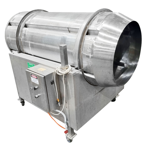 Coating drums are used in a variety of industries to perform particle coating applications in order to improve product characteristics. Coating drums are extremely flexible and can be used to apply most types of coatings to particles, be it for de-dusting, anti-caking, or otherwise.